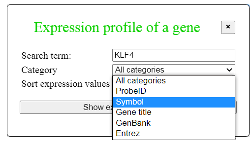 If you click the button "Gene expression profiles" in the main menu (Fig. 2), a dialog box