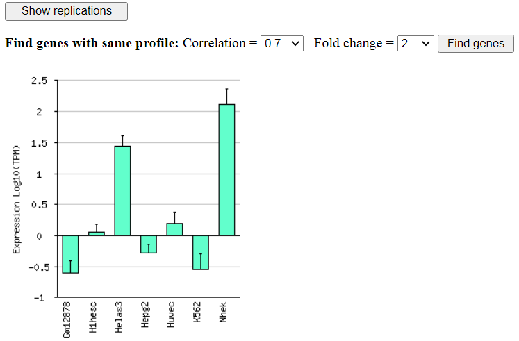 From this screen you can generate expression profile (bar chart) of a specific gene,