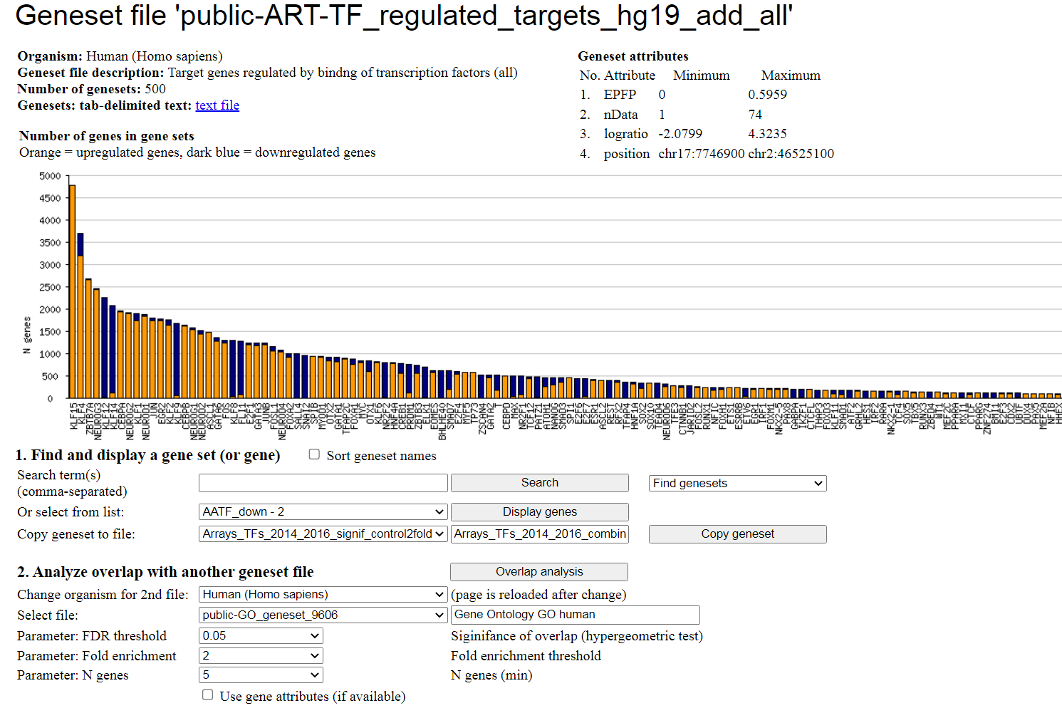 - Exploring geneset files and/or analyze gene overlaps with another file