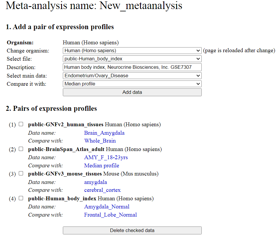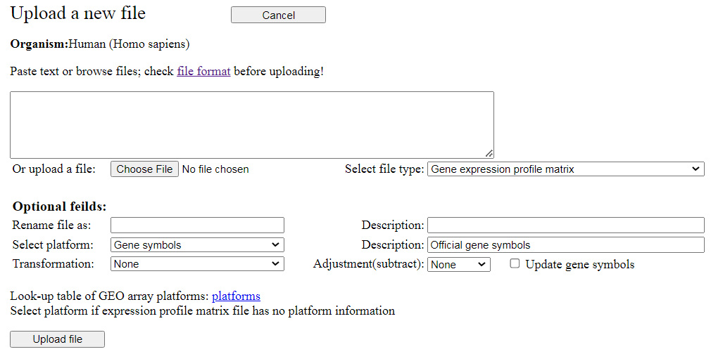 expression profile data can be uploaded manually. The gene expression profile data