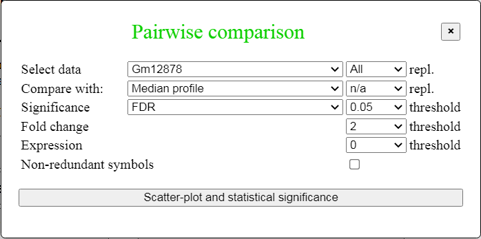 - Supports pairwise comparison of expression profiles (p-value and false discovery rate - FDR),
